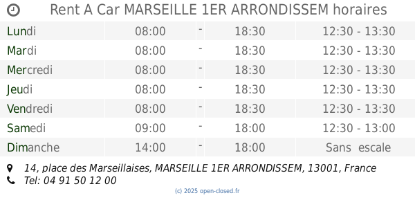 It is also possible to : Modifier ces HEURES D'OUVERTURE of Store Rent A Car Dans MARSEILLE 1ER ARRONDISSEM, 14, place des Marseillaises,